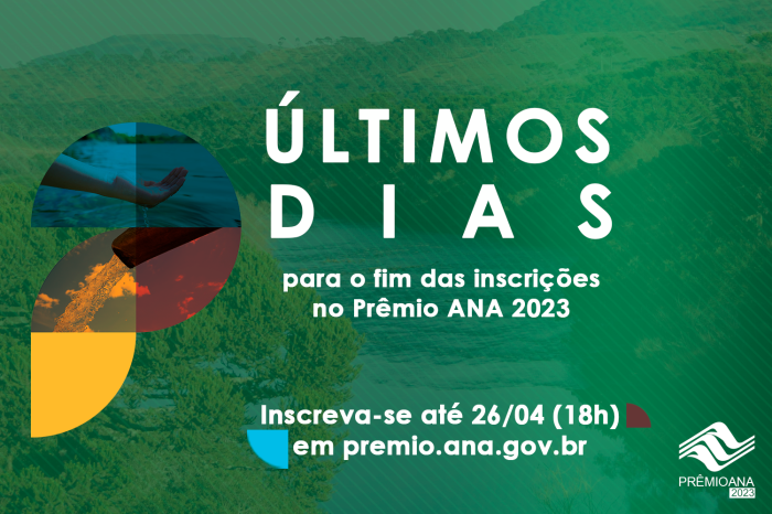 O Prêmio ANA 2023 recebe inscrições de boas práticas em prol das águas e do saneamento básico do Brasil até 26 de abril, às 18h. Os(as) interessado...