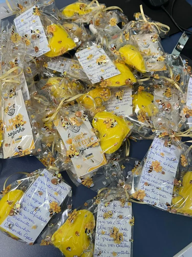 Alunos da APAE de Nova Cantu dedicaram o mês de setembro a uma ação especial de apoio emocional. Eles confeccionaram chaveiros em forma de coração, na cor amarela, acompanhados de bilhetes com mensagens de carinho e incentivo, destinados a pessoas que lutam contra a depressão e a ansiedade. Os pontos escolhidos para a entrega foram o Hospital Municipal, a Clínica da Mulher e o Posto de Saúde, onde foram disponibilizadas cestas com as lembranças motivacionais.