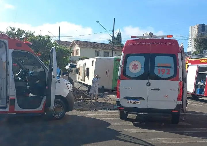 Na manhã desta quarta-feira (26), às 7h36, um ônibus da Secretaria de Saúde de Turvo sofreu um acidente por tombamento no centro de Guarapuava enquanto transportava pacientes para atendimento médico. O veículo tinha 32 passageiros cadastrados para a viagem, porém 17 estavam no ônibus no momento do ocorrido.