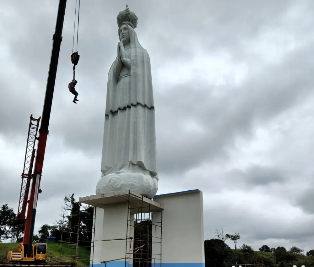 Emoção marca a instalação da imagem de Nossa Senhora de Fátima sobre o pedestal em Nova Cantu