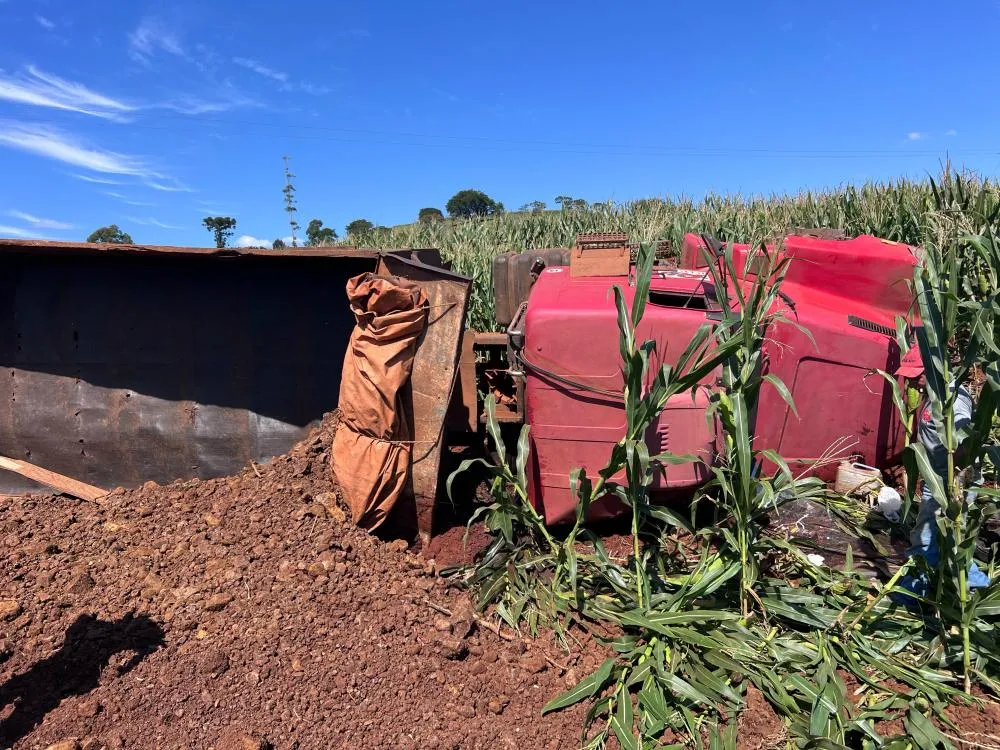 O acidente ocorreu enquanto o caminhão carregado com cascalho, seguia pela estrada da comunidade Caratuva sentido Dito Ferreira